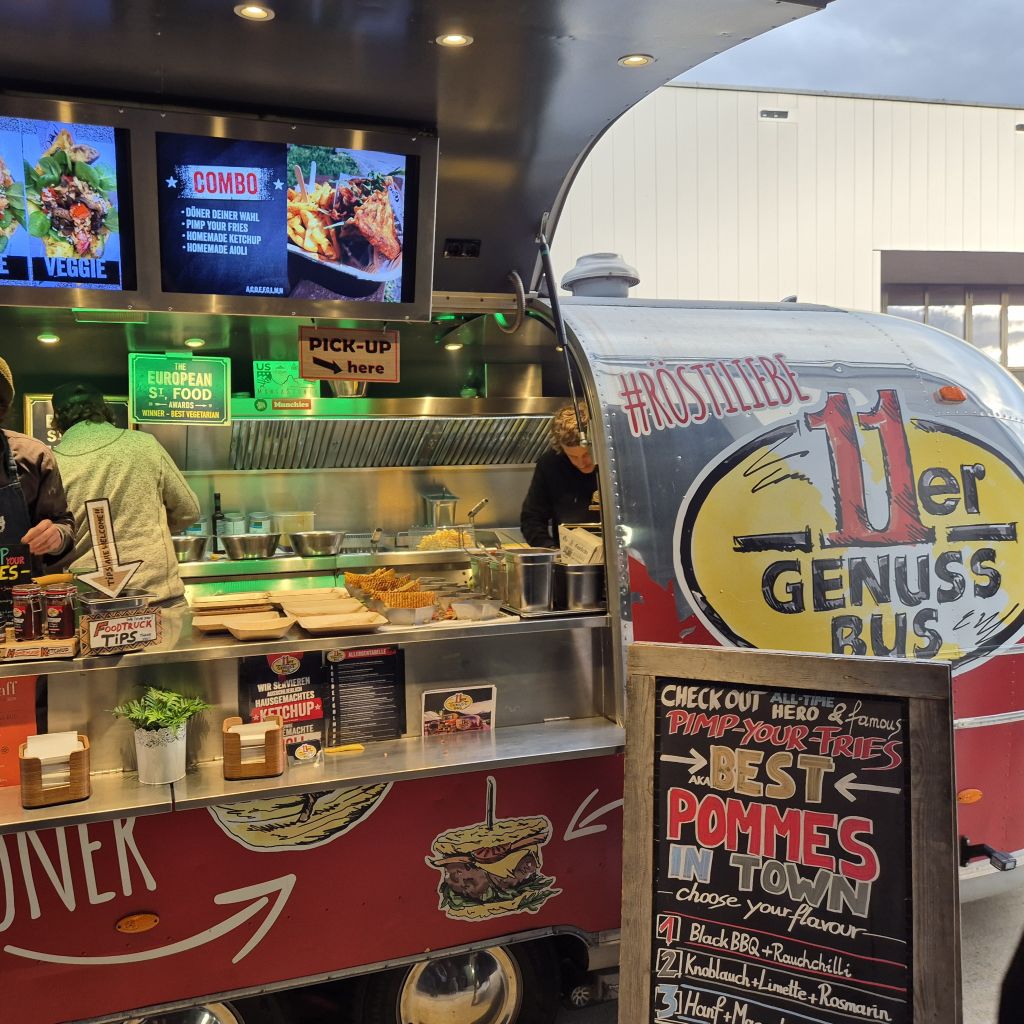 This was followed by various live demonstrations and station operations. Among other things, how a robot cell works in conjunction with image processing systems. How AI influences cheese quality control. As well as various safety devices and exhibits from KUKA to touch and marvel at. Finally, there was plenty of time for questions, discussions and technical talks. The culinary highlight was provided by Alpendöner with chips from 11er Nahrungsmittel with their food truck.